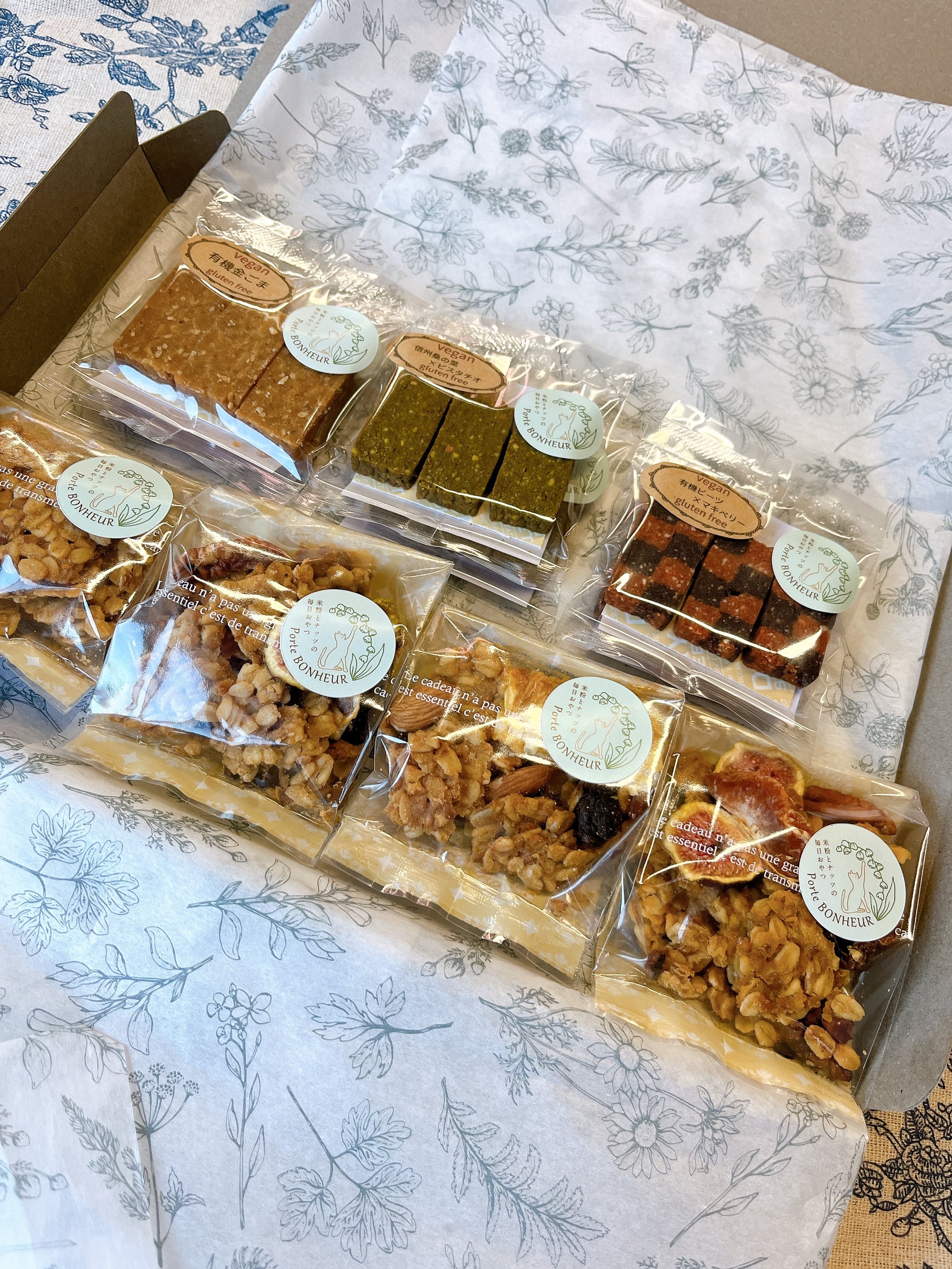 *こちらは、代替ヴィーガンクッキーが6袋と、米粉グラノーラが4袋のセットです。